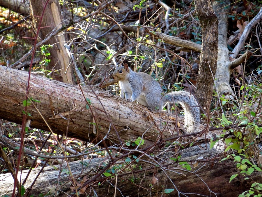 A squirrel taking cover