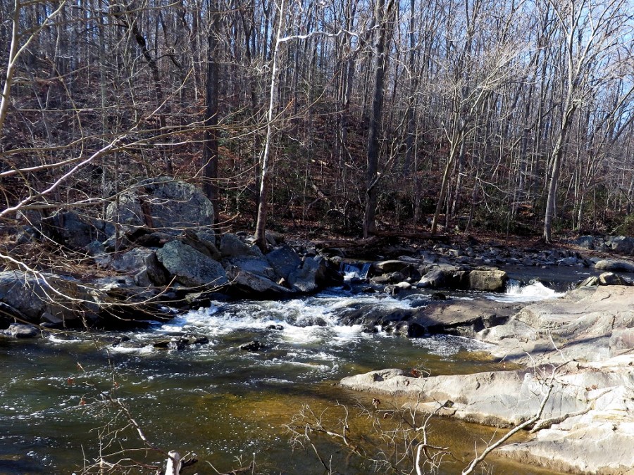 Mather Gorge, looking upstream. Note the hikers on the Billy Goat Trail, across the river on the Maryland side.