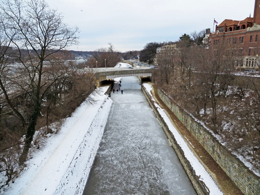 Ice on the Potomac River. Healy Hall marks Geogetown University on the skyline at center.