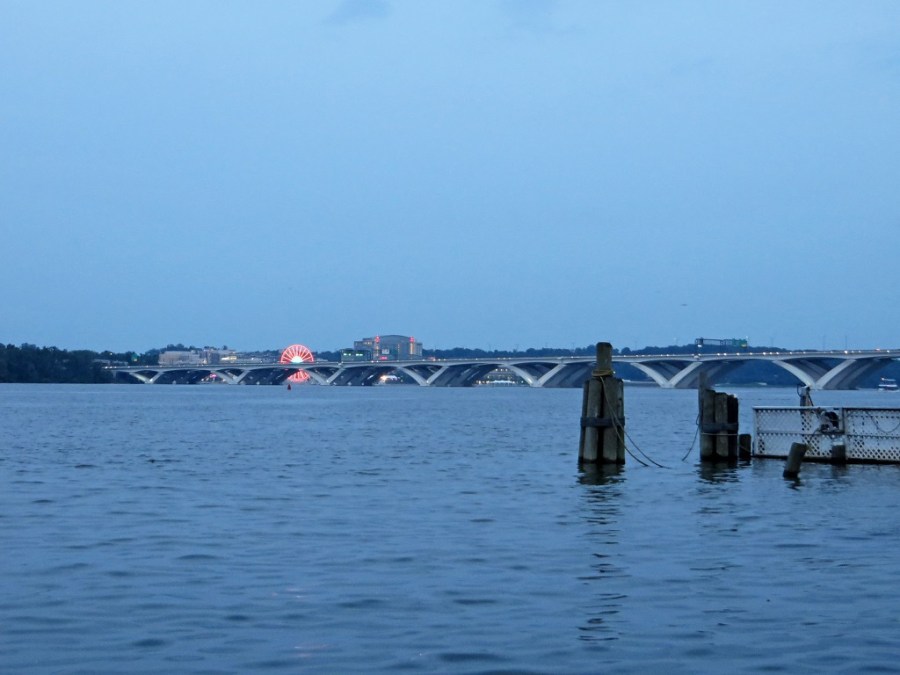 Wilson Bridge, and the lights of the Capital Wheel at National Harbor