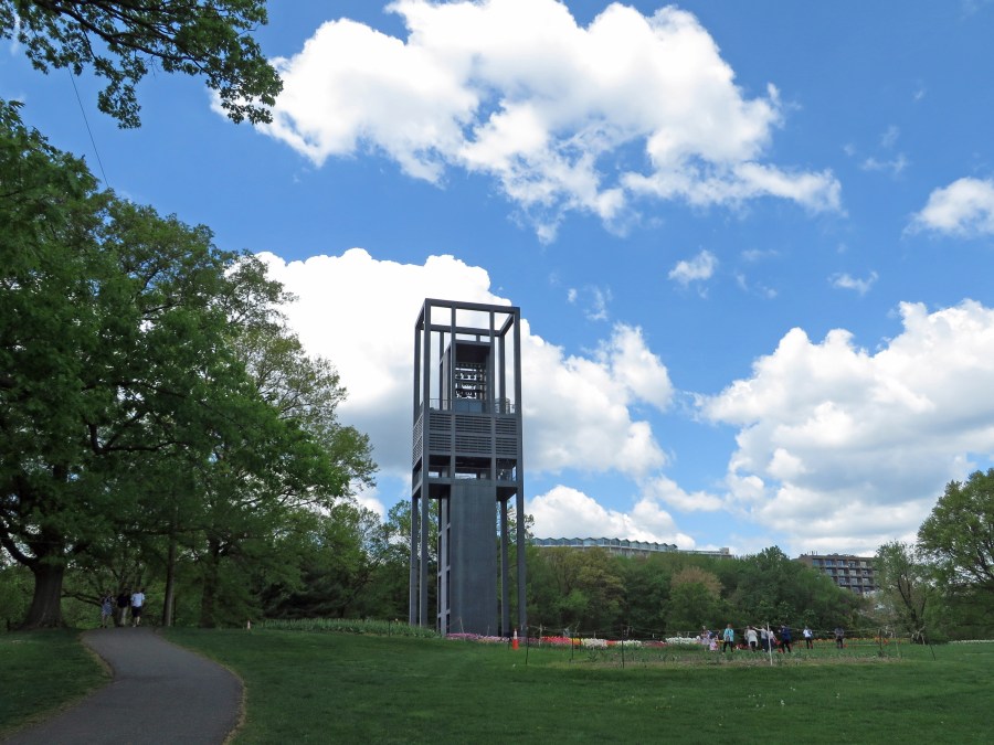 Tulips at the Carillon, with the Washington skyline in the distance