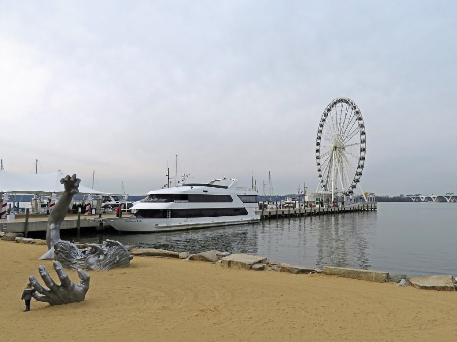 “The Awaking” sculpture. It was a white elephant located on Haines Point for many years, until National Harbor paid the $800K or so and relocated it here.
